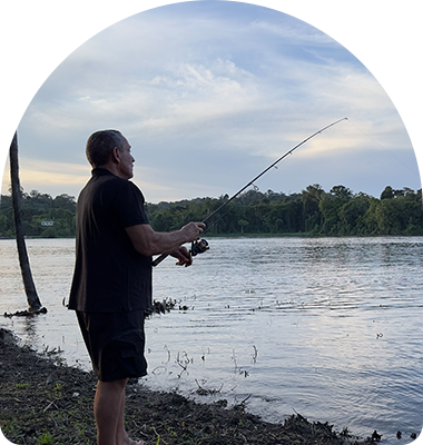 Situated on the serene banks of the Tapanahony River, our resort offers a perfect blend of nature and comfort. Enjoy kayaking through tranquil waters, swimming in pristine river spots, and embarking on guided boat and fishing trips. Discover the lush trails with a challenging hike up Tebu Top mountain, where breathtaking views await.